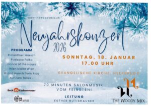 Das Ensemble The Woody Mix lädt dich herzlich zum Neujahrskonzert 2026 ein.